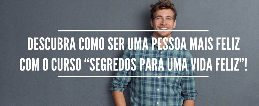 Se você possui interesse em melhorar sua autoestima e seu relacionamento com Deus e com os seres humanos, não perca mais tempo e inscreva-se no curso “SEGREDOS PARA UMA VIDA FELIZ”. Sem dúvidas, este curso trará informações muito importantes que te auxiliarão a se tornar uma pessoa mais grata e feliz! Não perca esta oportunidade. Inscreva-se agora mesmo em nosso curso!